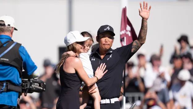 “In a weird way, as a competitor we probably shouldn’t say this, but that was a joy to watch,” Rahm said. “Seeing that image on 18 of him hugging his wife and his daughter – any man with a soul is going to have a soft spot for that. I was almost tearing up. As bad as I did because it was my own doing, I’m thankful to be present for such a moment.”