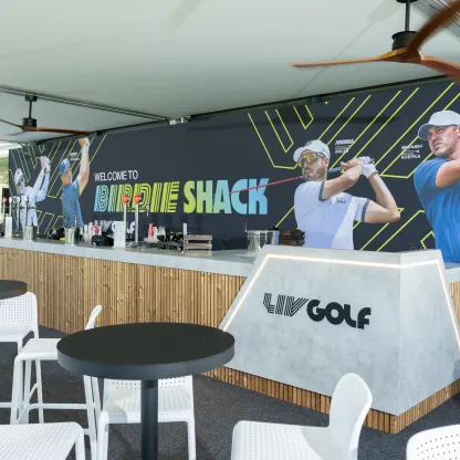 Our hospitality offers unforgettable ways to experience LIV Golf. Whether you’re soaking up the electric energy at the course’s liveliest hub or enjoying shaded lounges, gourmet bites, and premium comfort, you’ll be right at the heart of the action with unbeatable views. The ultimate way to enjoy world-class golf on and off the course.